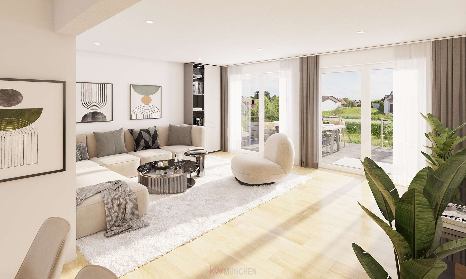 Einfach Wahnsinn ist der offene Wohn/Ess- und Küchenbereich mit fast 45 qm sonnendurchfluteter Südausrichtung, der direkt auf die über 25 qm große Sonnenterrrasse mit einzigartigem Weitblick führt – das Leben ist einfach schön!